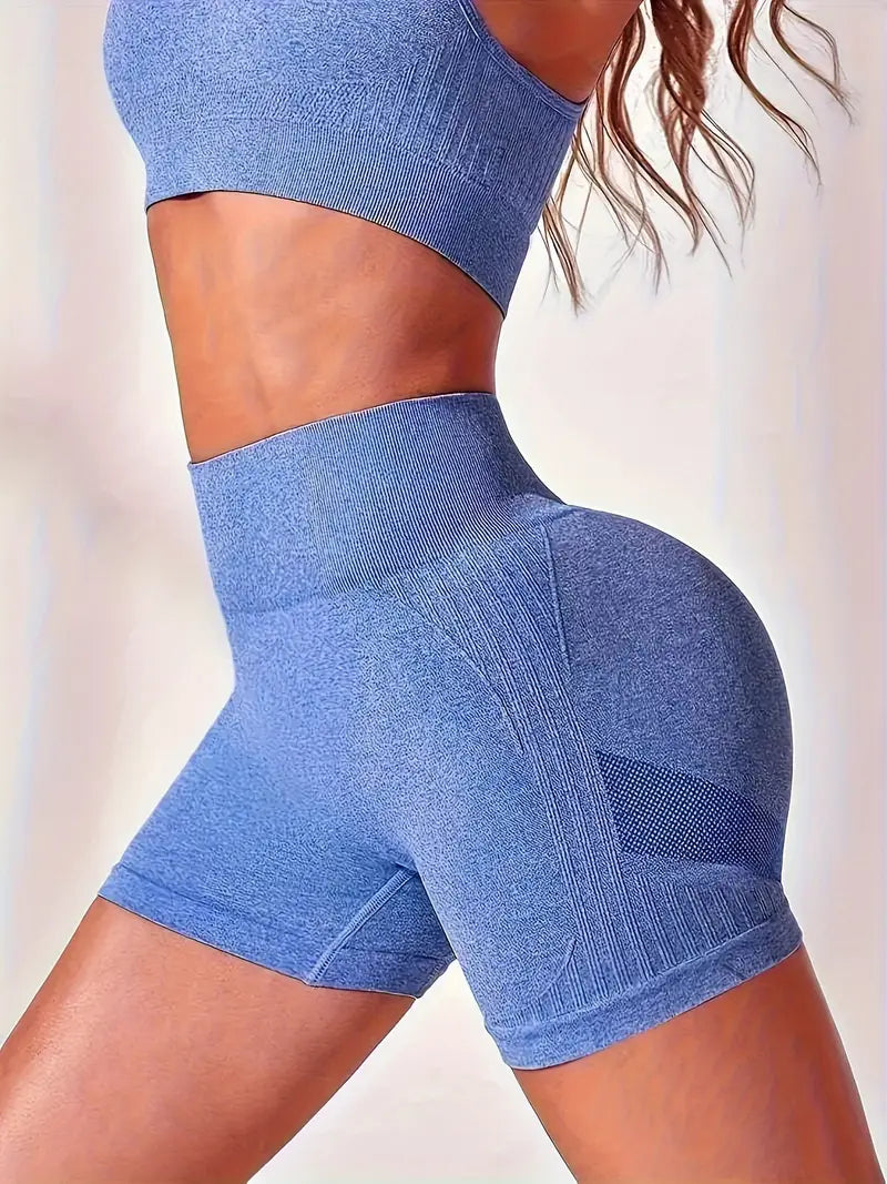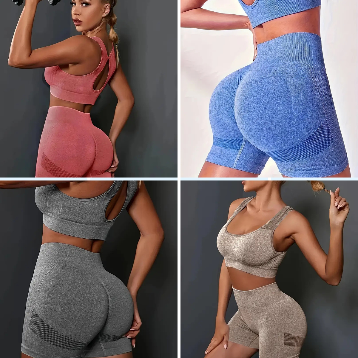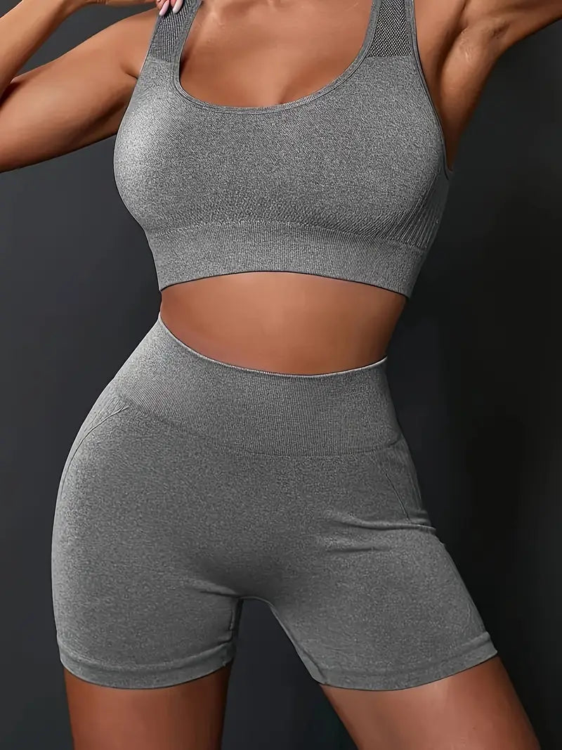 Bešavni sportski top pruža podršku pri svakom pokretu, dok push-up zona na šorcu vizuelno podiže i oblikuje obline.