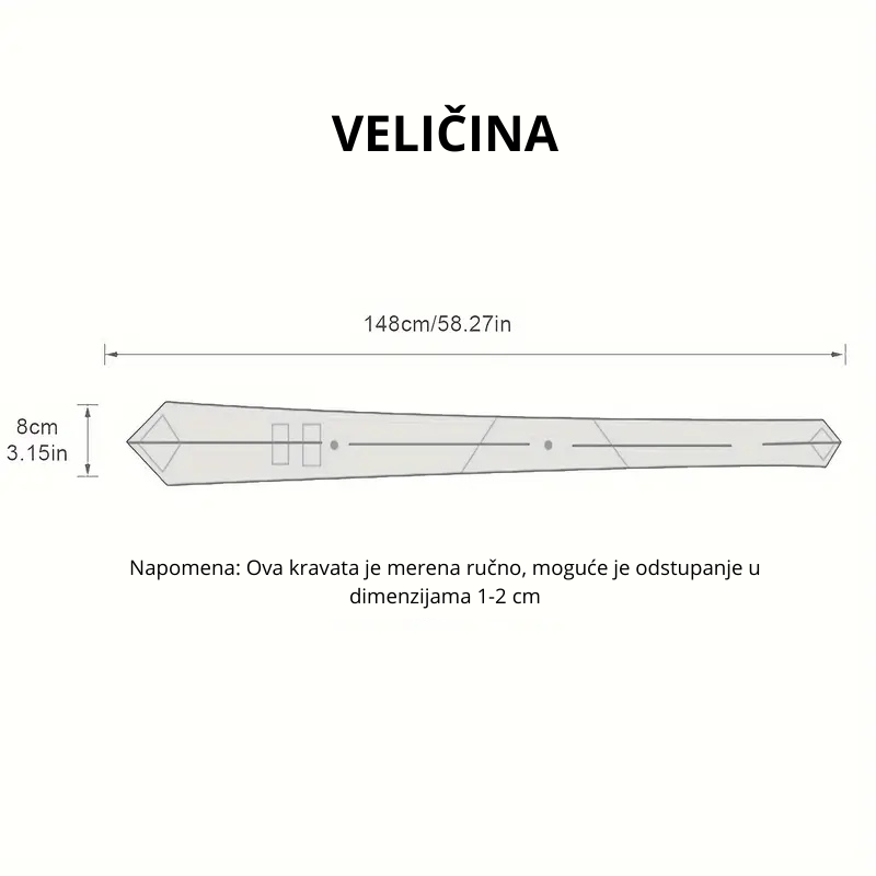 Naše kravate su izrađene od visokokvalitetnih materijala sa diskretnim, ali modernim teksturama koje odišu sofisticiranošću. Sa dužinom od 148 cm i širinom od 8 cm, savršeno pristaju svakom tipu košulje i odela.