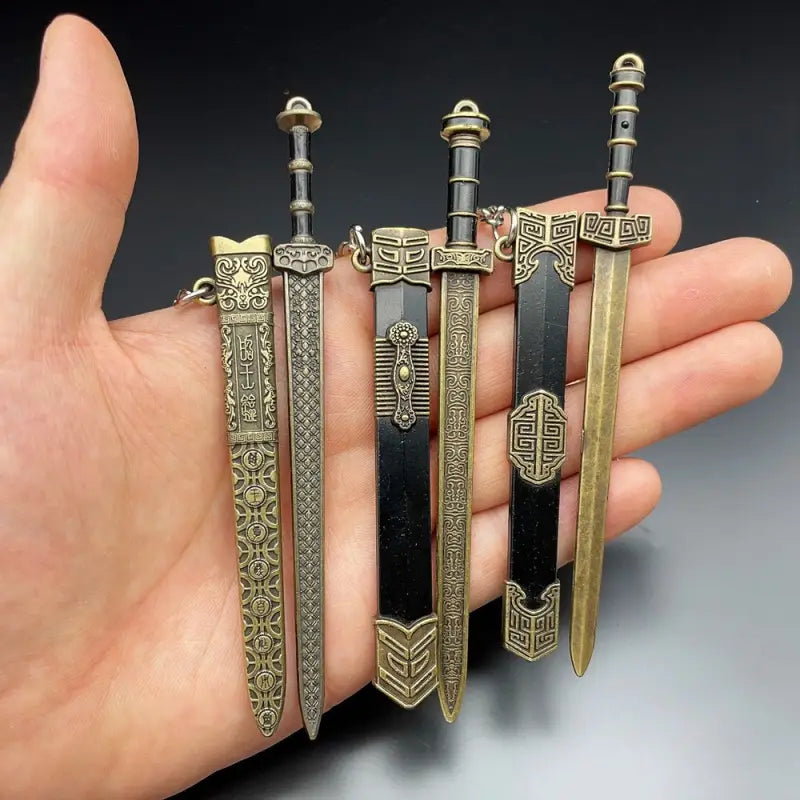 Svaki privezak je pažljivo izrađen od metala, sa bogato ukrašenom futrolom i autentičnim detaljima. Mačevi se mogu izvaditi iz korica, što ih čini idealnim i za kolekcionare, cosplay fanove, gamere i zaljubljenike u orijentalnu kulturu.