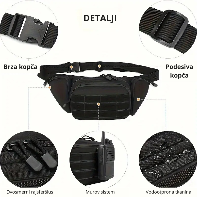Ova taktička torbica za struk idealna je za sve koji žele slobodu kretanja i brzi pristup osnovnim stvarima. Bilo da ideš u prirodu, na trening, motor, kampovanje ili dnevne obaveze – ova torbica je tvoj pouzdan saveznik.